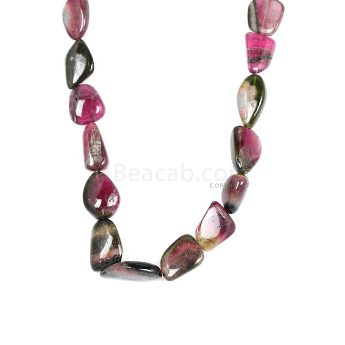1 Line - Watermelon (Bi-Color) Multi-Tourmaline Tumbled Beads - 443.00 cts - 12.5 x 19.6 mm to 15 x 24.5 mm (MTOUR1026)