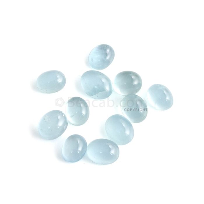 11 Pcs - 38.41 ct. -Medium Blue Aquamarine Oval Cabochon - 10 x 8.1 x 3.9 mm to 12 x 9 x 5.1 mm (AQCAB1060)