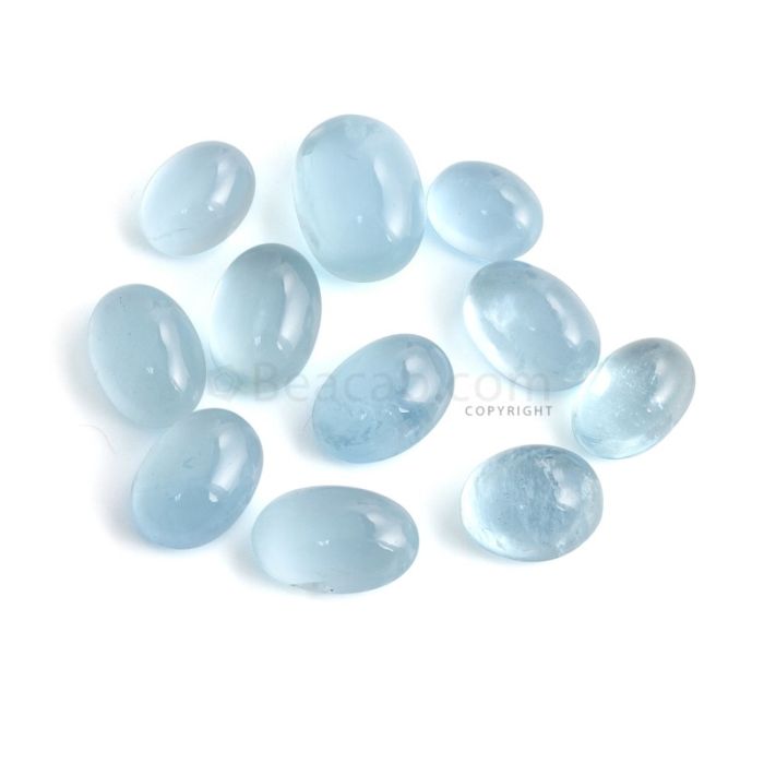 11 Pcs - 70.30 ct. -Medium Blue Aquamarine Oval Cabochon - 11.1 x 9 x 5.3 mm to 16.3 x 11.8 x 7.7 mm (AQCAB1089)