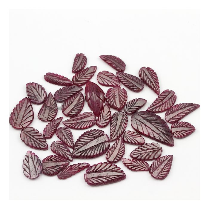 12.50 x 7.30 mm to 30 x 13.50 mm - Dark Red Ruby Leaf Shape Carving - 36 piece - 157.75 carats (RCar1014)