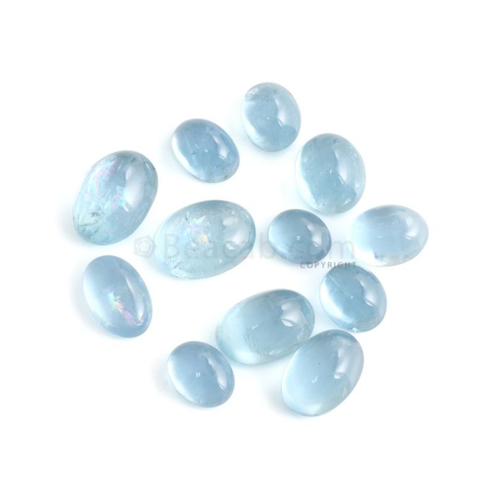 12 Pcs - 46.39 ct. -Medium Blue Aquamarine Oval Cabochon - 8.7 x 7.2 x 4.1 mm to 14.1 x 10 x 6.3 mm (AQCAB1069)