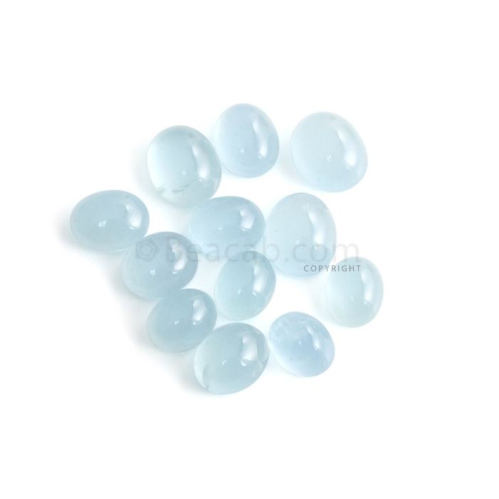 12 Pcs - 47.58 ct. -Medium Blue Aquamarine Oval Cabochon - 10 x 8.1 x 5.5 mm to 12.2 x 10.1 x 6 mm (AQCAB1056)