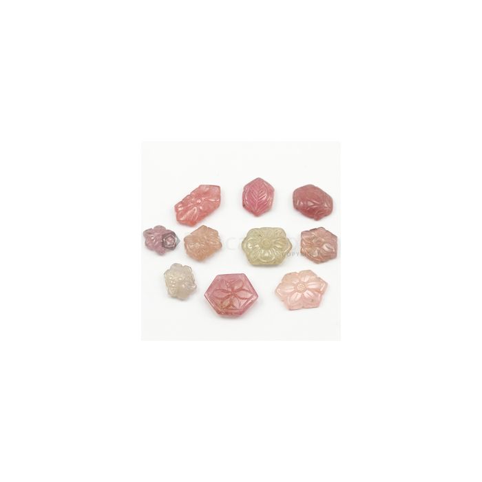 13 x 10 mm to 20 x 11 mm - Medium Tones Multi-Sapphire Hexagon Shape Carving - 10 pieces - 83.50 carats (MSCar1005)