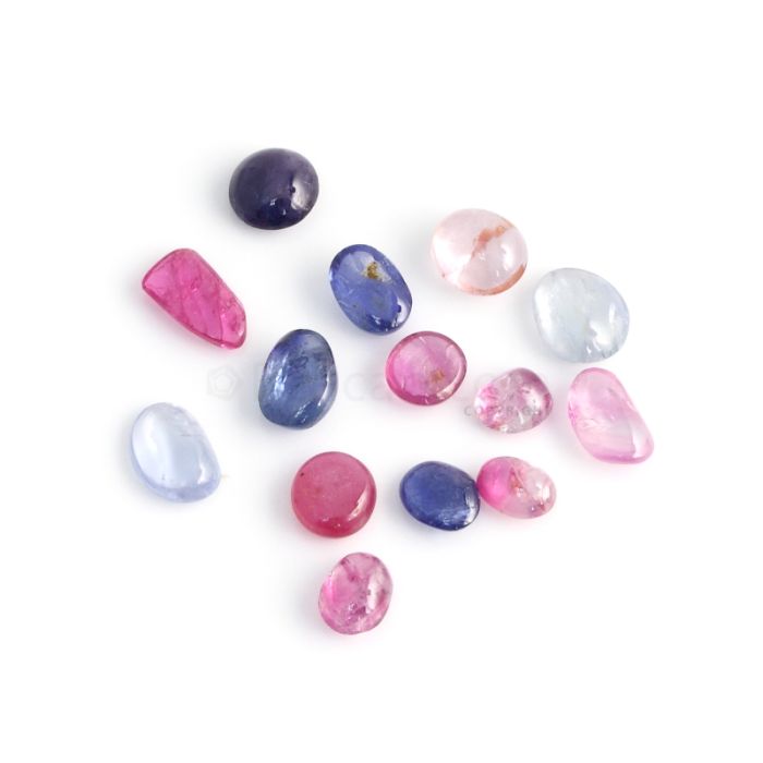 14 Pcs - Medium Tones No Heat Multi-Sapphire (Ceylon) Tumbled Cabochons - 26.75 cts. - 7 x 5.3 mm to 9.3 x 8 mm (MSFF1016)
