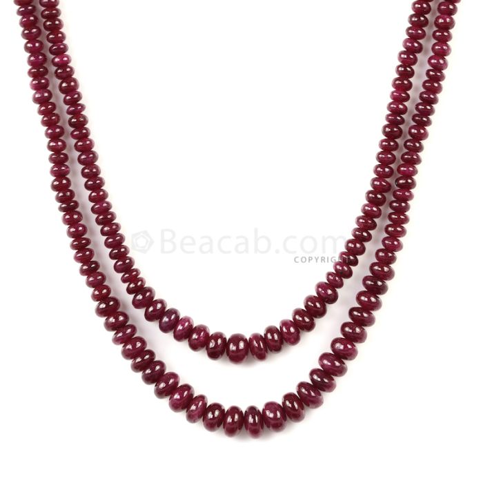 2 Lines - Dark Red Ruby Smooth Beads - 110.00 cts - 2.7 to 5.5 mm (RSB1070)