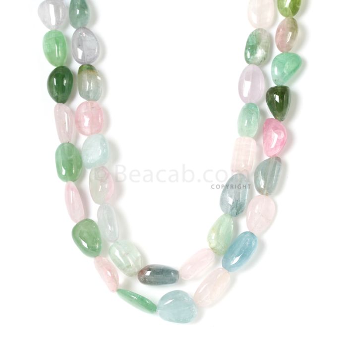2 Lines - Dark Tones Multi-Tourmaline Tumbled Beads - 1157 cts - 11.5 x 13.5 mm to 15.6 x 20.1 mm (MTOUR1023)