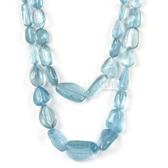 2 Lines - Medium Blue Aqua Tumbled Beads - 713.50 cts - 10.8 x 8.2 mm to 29.4 x 21 mm (AQTUB1028)