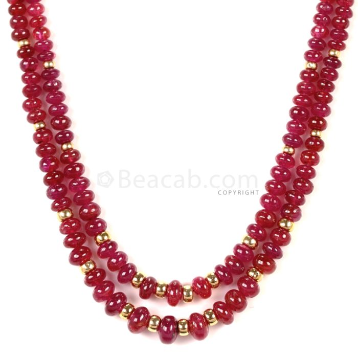 2 Lines - Medium Red Ruby Smooth (Plain) Beads - 184.50 - 2.7 to 6.8 mm (RSB1058)