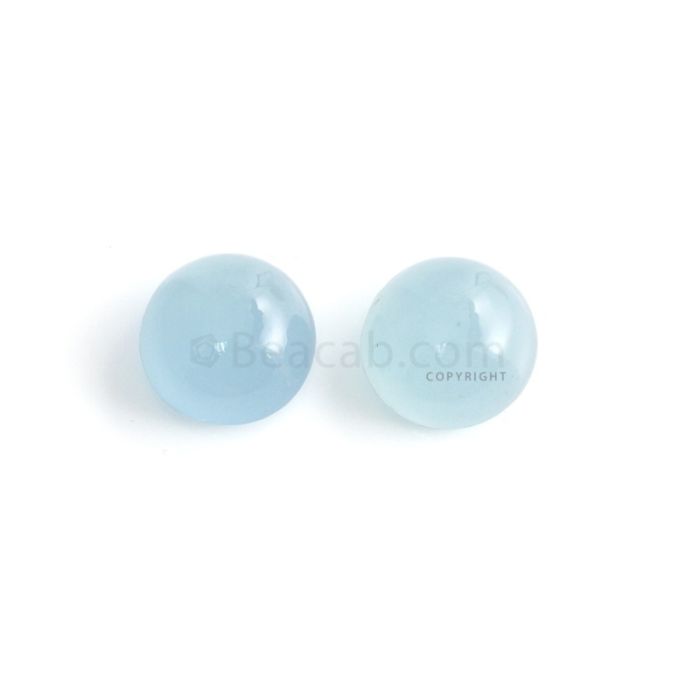 2 Pcs - 17.93 ct. -Medium Blue Aquamarine Round Cabochon - 13 x 7.9 mm to 13.2 x 7.3 mm (AQCAB1017)