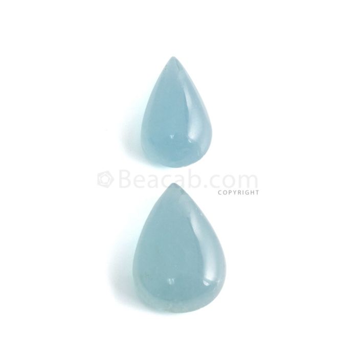 2 Pcs - 43.81 ct. -Medium Blue Aquamarine Pear Cabochon - 21.4 x 13.1 x 8.5 mm to 24.9 x 16.9 x 8.9 mm (AQCAB1068)