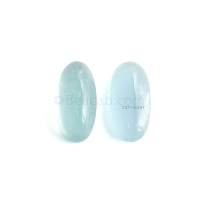 2 Pcs - 46.04 ct. -Medium Blue Aquamarine Oval Cabochon - 27.4 x 13.5 x 6.9 mm to 27.4 x 12.9 x 10.2 mm (AQCAB1075)