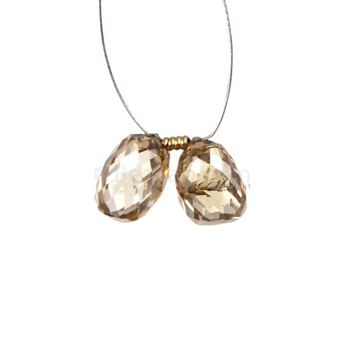 2 Pcs - Champagne (Brown) Diamond Faceted Drops - 6.37 cts - 9.1 x 6.5 mm & 9.1 x 6.9 mm (DIADRP1041)