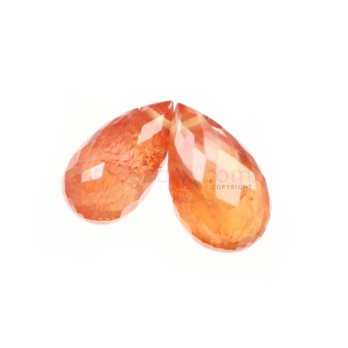 2 Pcs - Dark Orange Sapphire Faceted Drops - 5.74 cts - 10.2 x 6 mm & 9.5 x 5.2 mm (MSFD1082)