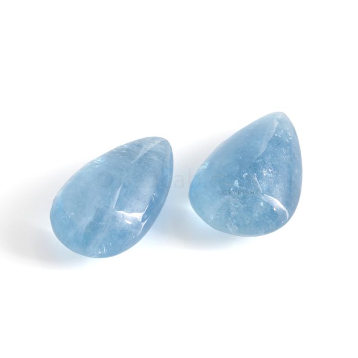 2 Pcs - Light Blue Aquamarine Drop - 53.29 cts. - 25 x 15 mm & 25 x 16.8 mm (AQDR1048)