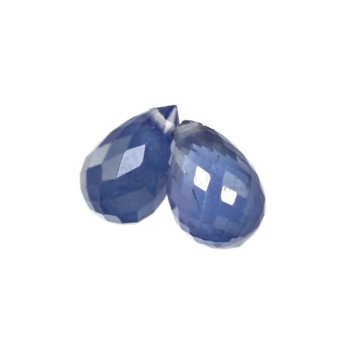 2 Pcs - Medium Blue Sapphire Faceted Drops - 2.45 cts - 6.6 x 4.4 mm & 7.1 x 4.2 mm (MSFD1114)