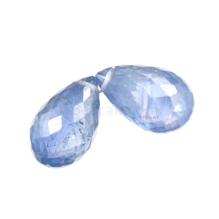 2 Pcs - Medium Blue Sapphire Faceted Drops - 6.48 cts - 10 x 6.2 mm & 10.5 x 6.1 mm (MSFD1129)