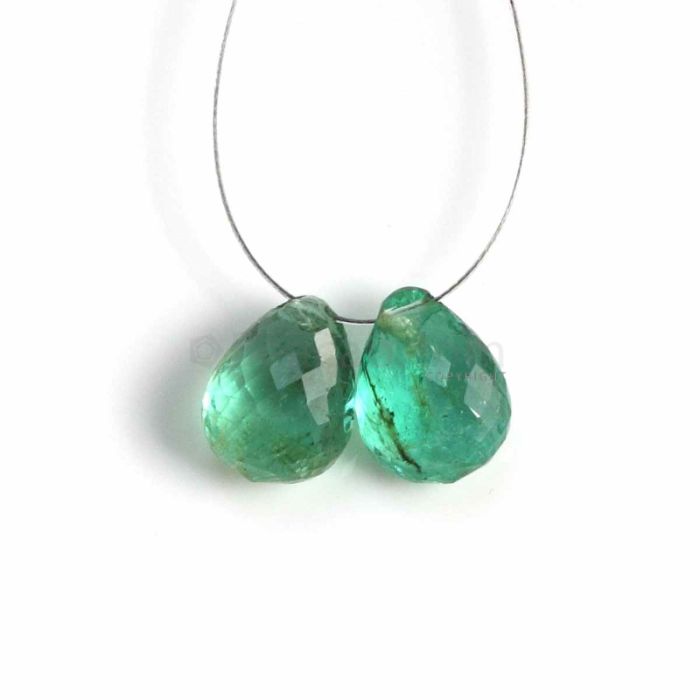2 Pcs - Medium Green Emerald Drops - 4.54 ct. - 9.4 x 7.2 mm & 9 x 7 mm (EDR1048)