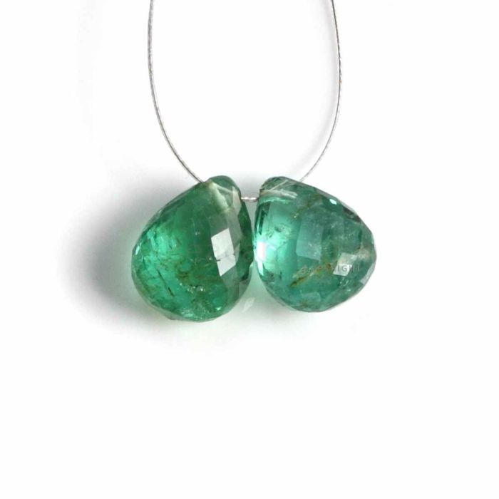 2 Pcs - Medium Green Emerald Drops - 6.44 ct. - 10 x 8 mm & 10.2 x 8 mm (EDR1058)