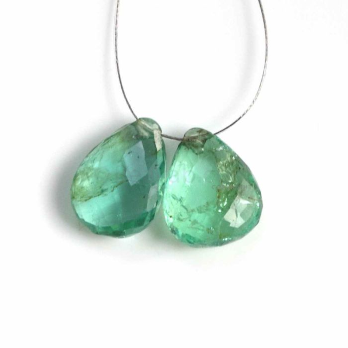 2 Pcs - Medium Green Emerald Drops - 5.6 ct. - 11 x 8.8 mm & 11.4 x 8.5 mm (EDR1085)