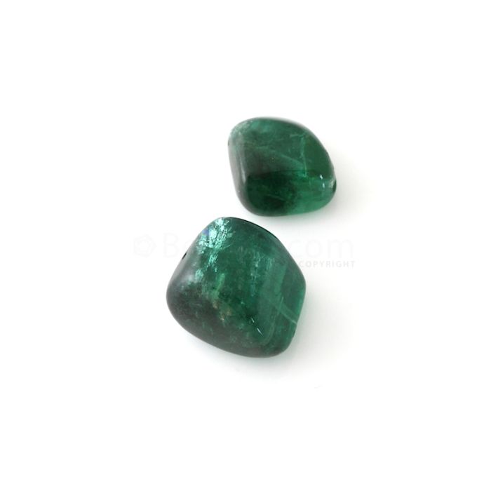 2 Pcs - Medium Green Emerald Tumbled Beads - 17.15 cts - 10.5 x 10 mm to 11.9 x 10.2 mm (EMTUB1101)