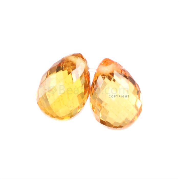 2 Pcs - Medium Orange Sapphire Faceted Drops - 2.33 cts - 6.4 x 4.5 mm & 6.2 x 4.2 mm (MSFD1072)