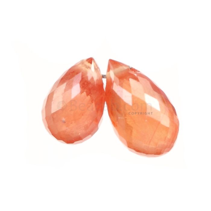 2 Pcs - Medium Orange Sapphire Faceted Drops - 3.30 cts - 7.3 x 4.8 mm & 8.4 x 4.4 mm (MSFD1085)