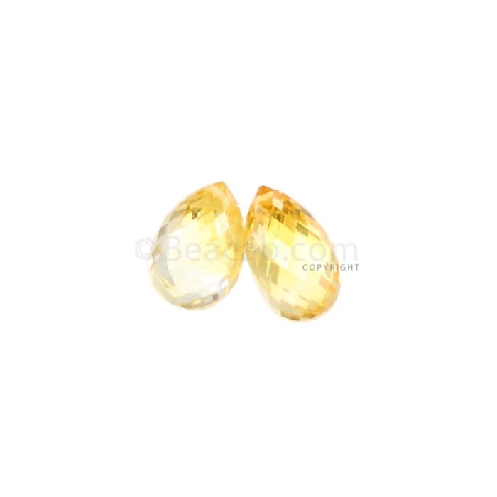 2 Pcs - Medium Yellow Sapphire Faceted Drops - 6.83 cts - 9.2 x 6.2 mm & 9.7 x 6 mm (MSFD1068)