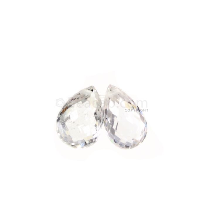 2 Pcs - White Sapphire Faceted Drops - 2.32 cts - 6.7 x 4.7 mm & 6.9 x 4 mm (MSFD1096)