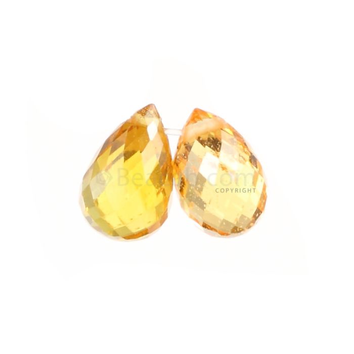 2 Pcs - Yellow Sapphire Faceted Drops - 2.11 cts - 6.7 x 4.3 mm & 6.2 x 4.2 mm (MSFD1078)