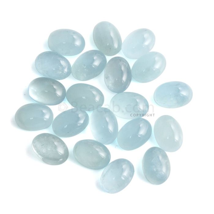 20 Pcs - 129.84 ct. -Medium Blue Aquamarine Oval Cabochon - 13.9 x 9.9 x 5.8 mm to 14.2 x 10.2 x 6.6 mm (AQCAB1063)