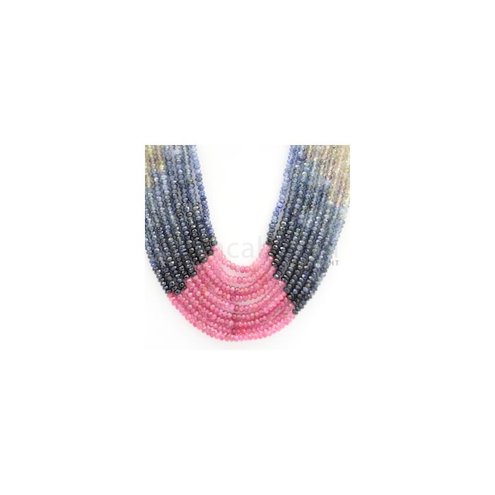 3.00 mm - Multi Sapphire Faceted Beads - 458.52 carats - 18 to 21 inches (MSFBnE1027)