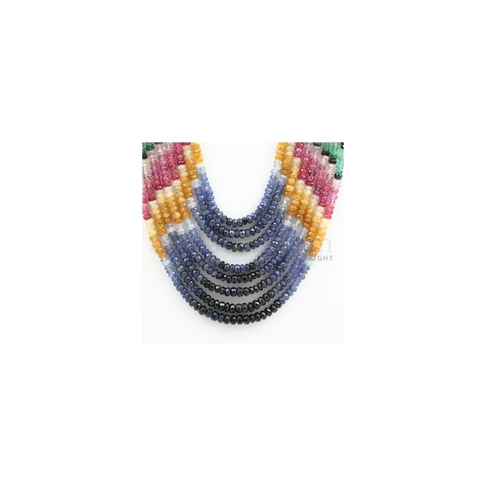 3.50 to 4.75 mm - Emerald, Ruby, Sapphire, Multi Sapphire Faceted Beads - 467.20 carats - 13 to 17 inches (MSFBwE1002)