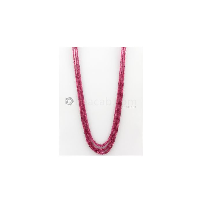 3 Lines - 2.90 to 5 mm Dark Pink Color Pink Sapphire Smooth Gemstone Beads - 144.7 carats (PnSPB1016)