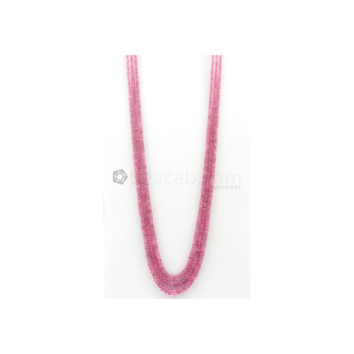 3 Lines - 3 to 5 mm Light Pink Color Pink Sapphire Smooth Gemstone Beads - 251.1 carats (PnSPB1013)