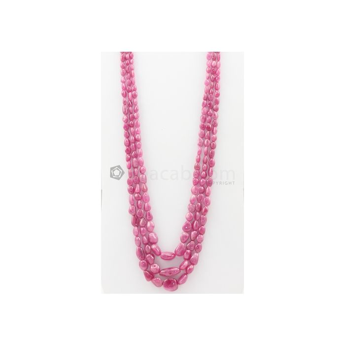 3 Lines - 5 x 6.50 mm to 14 x 16 mm Medium Pink Color Pink Sapphire Tumbled Gemstone Beads - 662.8 carats (PnSTuB1045)