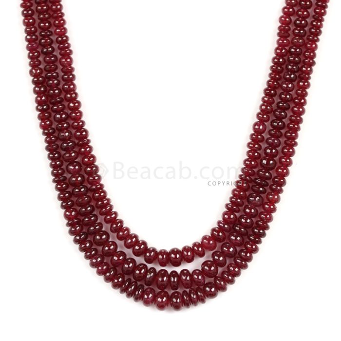 3 Lines - Dark Red Ruby Smooth (Plain) Beads - 248.50 - 3.1 to 5.6 mm (RSB1065)