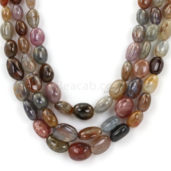 3 Lines - Dark Tones Multi-Sapphire Tumbled Beads - 655.06 - 8.5 x 6.1 mm to 13.7 x 10 mm (MSTUB1064)