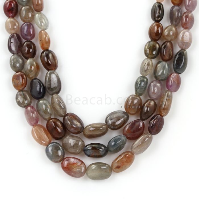 3 Lines - Dark Tones Multi-Sapphire Tumbled Beads - 759.32 - 9.2 x 6.2 mm to 13.9 x 10.2 mm (MSTUB1063)