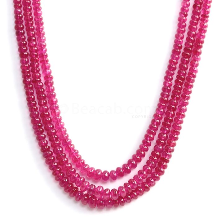 3 Lines - Light Red Ruby Smooth Beads - 374.80 cts - 4.2 to 6.3 mm (RSB1073)