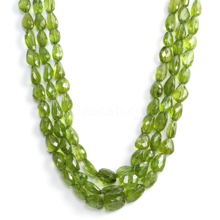 3 Lines - Medium Green Peridot Faceted Tumbled Beads - 814.30 cts - 8.3 x 8 mm to 14.8 x 11.8 mm (PFTUB1001)