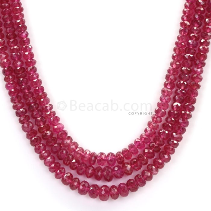 3 Lines - Medium Red Faceted Ruby Beads - 179.71 - 2.8 to 5.2 mm (RFB1098)