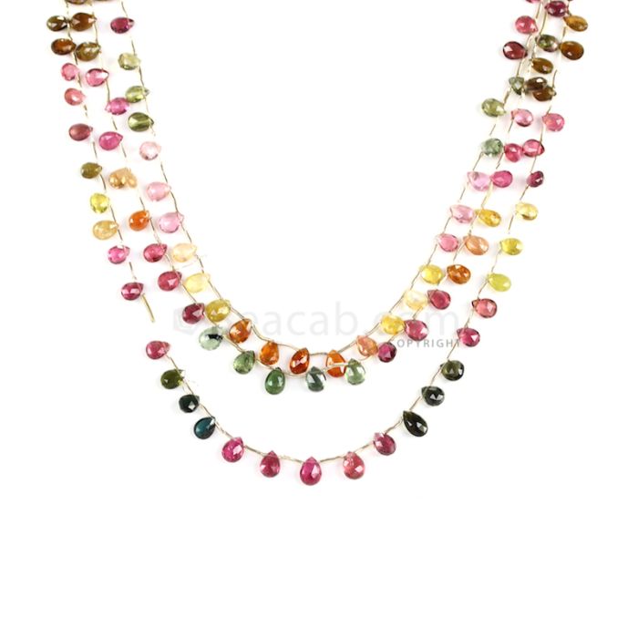 3 Lines - Medium Tones Multi-Tourmaline Faceted Drops - 100.00 cts - 7 x 5.4 mm to 7.5 x 5.8 mm (MTFD1193)