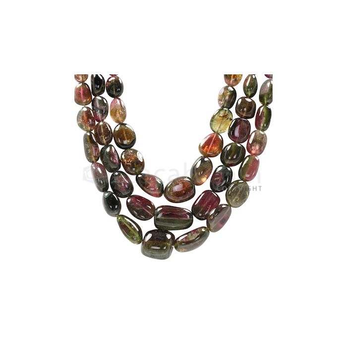 3 Lines - Watermelon (Bi-Color) Multi-Tourmaline Tumbled Beads - 740 cts - 8.4 x 8.2 mm to 19.2 x 11.4 mm (MTOUR1021)