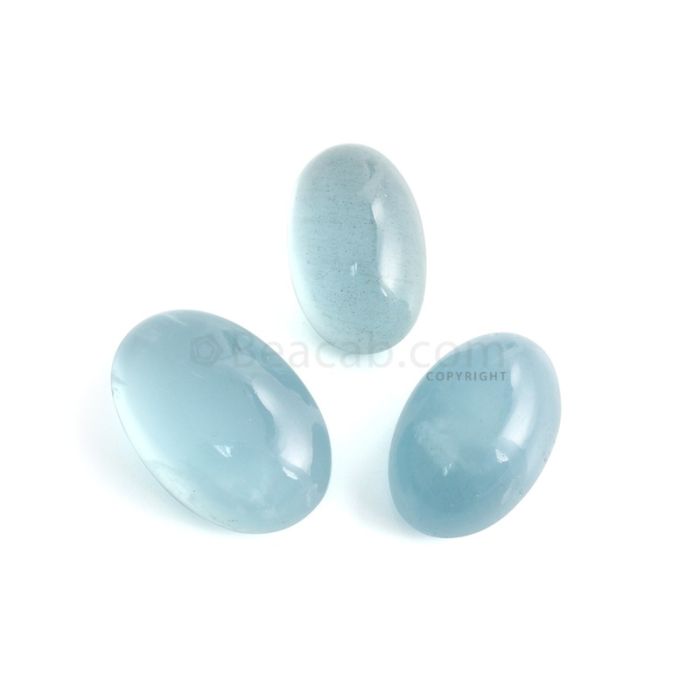 3 Pcs - 69.47 ct. -Medium Blue Aquamarine Oval Cabochon - 20.5 x 12.8 x 9.7 mm to 24.8 x 16.1 x 9.7 mm (AQCAB1088)