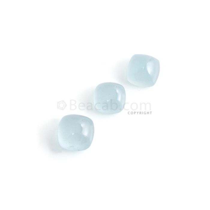 3 Pcs - 8.71 ct. -Medium Blue Aquamarine Cushion Cabochon - 8.1 x 8 x 4.6 mm to 9.1 x 9 x 5.6 mm (AQCAB1018)