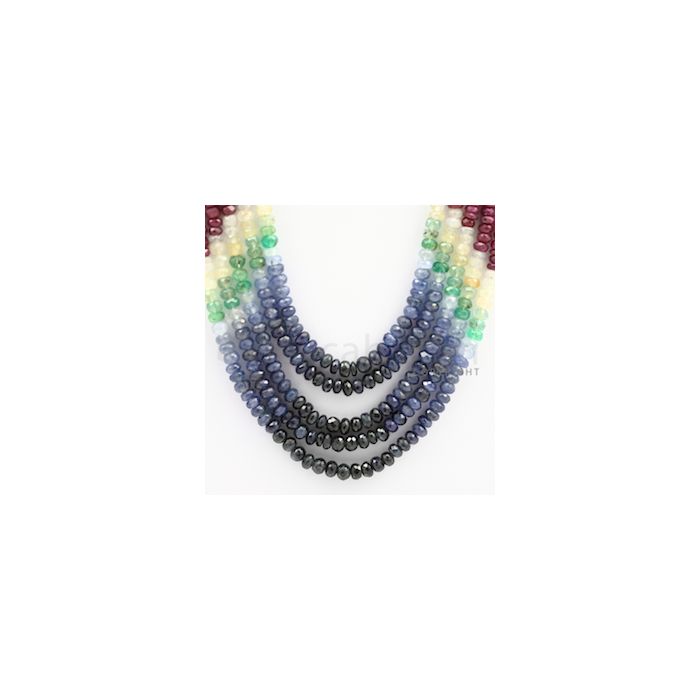 4.00 to 5.00 mm - Emerald, Ruby, Sapphire, Multi Sapphire Faceted Beads - 428.55 carats - 15 to 18 inches (MSFBwE1014)