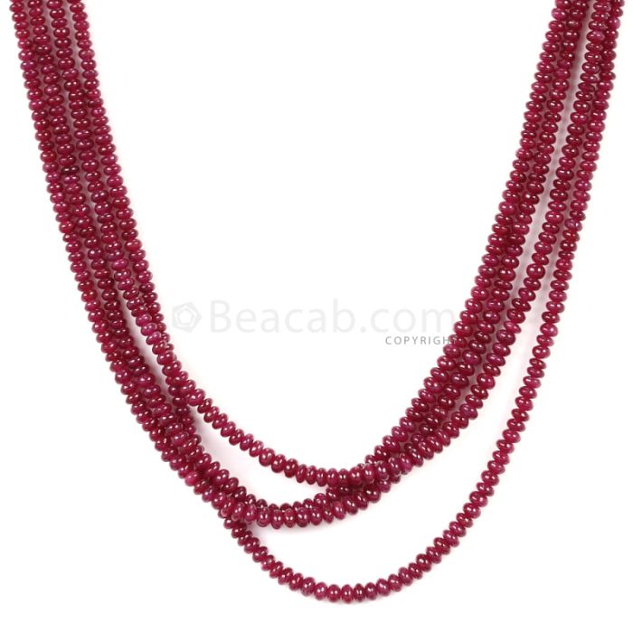4 Lines - Dark Red Ruby Smooth (Plain) Beads - 166.00 - 2.2 to 3.4 mm (RSB1064)