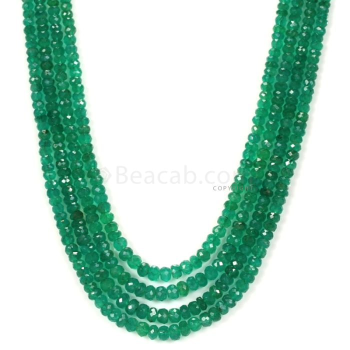 4 Lines - Medium Green Emerald Faceted Beads - 191.00 - 3 to 4.9 mm (EMFB1055)