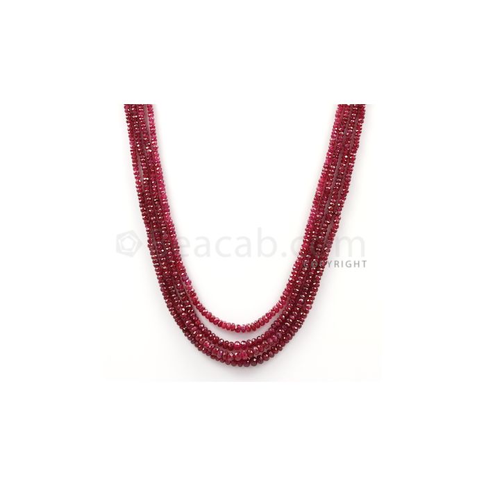 4 Lines - Faceted Medium Red Ruby Beads - 142.16 cts - 2 to 3.7 mm (RFB1091)