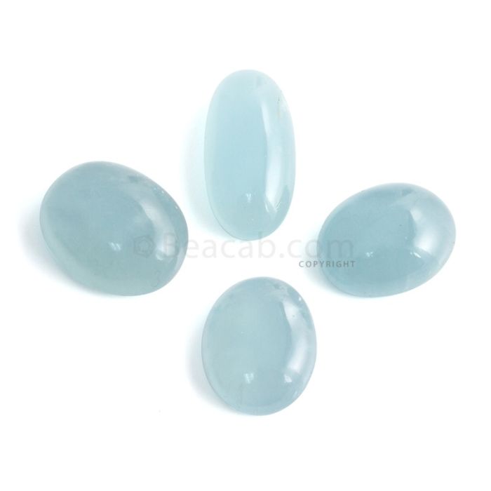 4 Pcs - 79.57 ct. -Medium Blue Aquamarine Oval Cabochon - 20 x 16.1 x 6.2 mm to 25.4 x 13.1 x 7.9 mm (AQCAB1084)